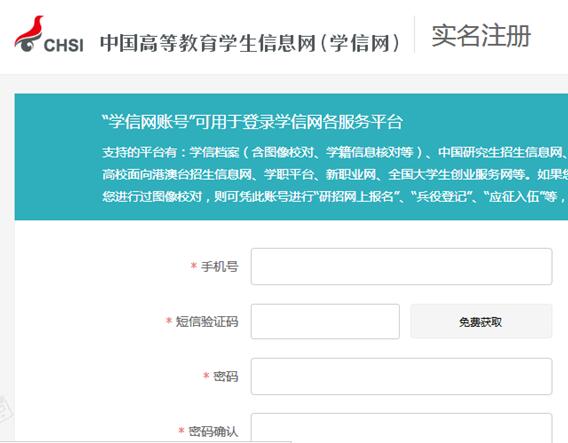 ①注册学信网账号:学生如实填写姓名及各项信息(曾经注册过学信网账号的学生可跳过此步,直接登录):