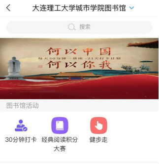 下载“学习通” App或移动图书馆App,输入邀请码dllgcsxy进入单位图书馆69堂。点击活动轮播图即可开始活动。