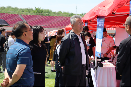 学院党政领导亲临招聘会现场,与招聘企业沟通交流,积极探讨校企合作新路径。