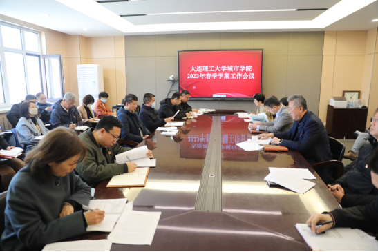 在后勤楼309会议室召开2023年春季学期工作会议,部署主要工作任务。学院领导、各部门负责人、各分院院长(副院长)、党总支书记(副书记)、各教工党支部书记参加会议。副院长沈海龙主持会议。