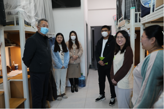 副院长石华、邹亚新一行分别到电子与自动化学院、管理学院、建筑工程学院、外国语学院、思政部、基础教学部与驻守教师亲切交谈,深入寝室为学生送去关怀。两位院领导对一线教师的教学态度和精神风貌表示肯定,对加强线上教学质量提出要求,同时听取了教师对推动学院发展的合理化建议。