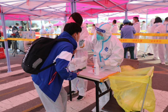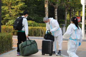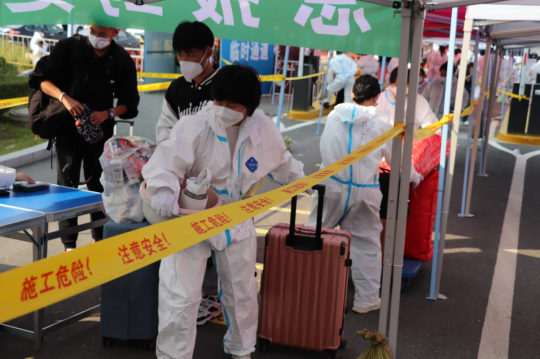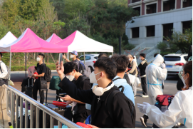 凌晨2时50分,第一辆迎新校车抵达校门口。“同学您好”,“同学请出示您的健康码、行程卡”,“同学请这边做核酸。”在教师志愿者的亲切引导下,同学们有序完成扫描校园场所码,核酸检测及“五核验一测温”等程序,无异常后闭环进入寝室。