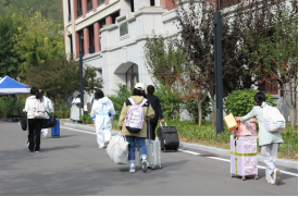 信息管理专业2022级新生刘欣的父亲刘振宇向进入校园的女儿远远的招手。他说,为了学生的健康安全,特别理解学院严格落实疫情防控各项举措,虽然不能把女儿亲自送到宿舍,但学院的各项工作细致周到,作为家长心里很踏实。