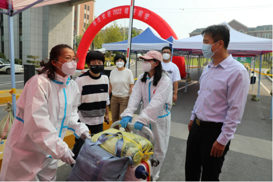 在迎新现场,杨斌院长要求,严格遵从疫情防控工作规定及迎新工作方案,严细、认真、热情地做好学生报到返校的各项服务保障工作,确保校园疫情防控工作落细落实。