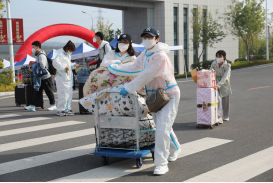 副院长宋辉表示,今天我们的老师志愿者都很辛苦,也很可敬,他们就像自己是家长送子上学一样用心。特别是一些女老师,全力以赴地帮着学生们搬运行李,看到她们满脸的汗水非常感动,在这里我看到了学院凝聚的力量,很有幸与这样的老师为伍。