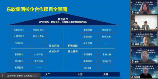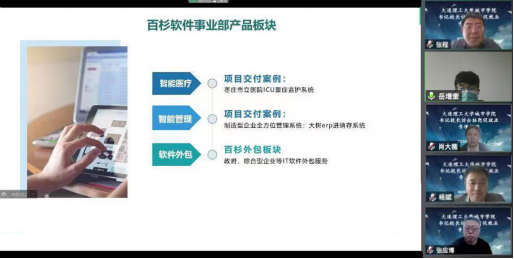 书记、院长访企拓岗促就业专项行动实施方案》部署,克服疫情封校影响, 4月29日,杨斌院长在校内主持召开3场视频座谈会,分别与东软集团(大连)有限公司、大连益盛达智能科技有限公司、青岛百杉软件科技有限公司等3家企业进行线上交流。就业工作部、计算机工程学院负责人参加座谈会。