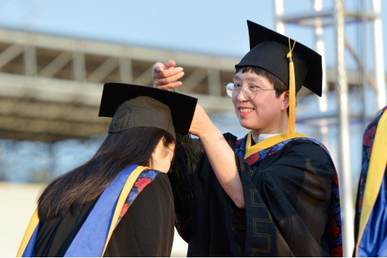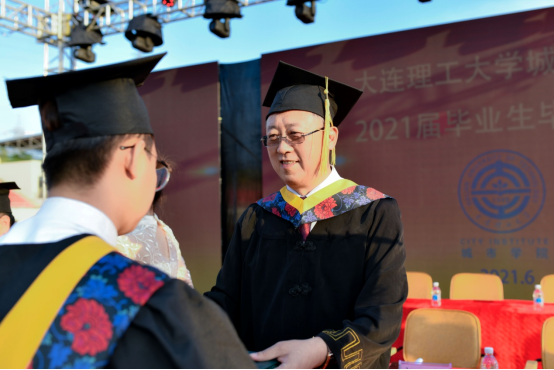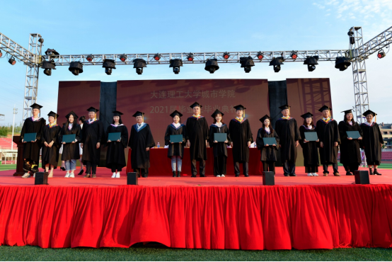 优秀毕业生”称号。主席台领导为毕业生代表拨动流苏、授予学位,同时为获奖毕业生代表颁奖。