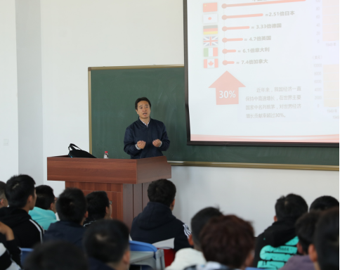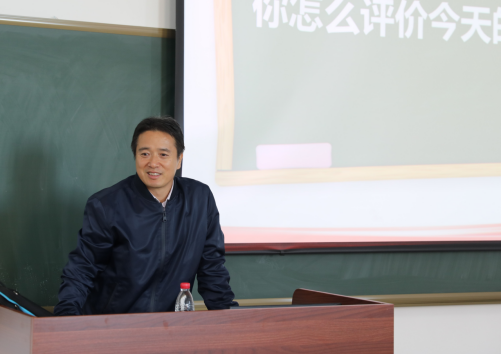 课上,杨斌以中国高铁的飞速发展为切入点,从新国力、新地位、新征程、新矛盾四个视角为同学们解读新时代的内涵;以广阔的视野,放眼世界,展示处在百年未有之大变局中的中国所处的国际环境,以及大国的担当与使命,启发学生坚定中国特色社会主义道路自信、理论自信、制度自信、文化自信。