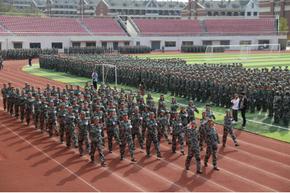 2020级新生军训汇报表演暨总结表彰大会在体育场隆重举行。党委书记郭玉铸、党委副书记兼副院长(主持行政工作)杨斌、副院长石华、沈海龙、宋辉,以及各分院负责人、军训团的负责同志参加了大会。大会由学生工作部副主任刘学奇主持。