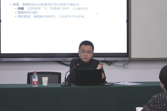 北京大学心理与认知科学学院副院长姚翔研究员针对高校管理决策做了详细讲解,围绕决策的认知部分、决策行为的模型进行分享。他指出,决策过程不仅是明确标准和建立选项的智力活动过程,而选择与选择后的价值观更为重要。