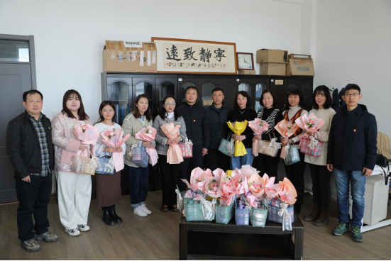 3月8日上午,学院领导在相关部门负责人的陪同下分别前往各分院及机关教辅部门,为坚守岗位的女教职工发放福利品和鲜花,并为大家送上节日的祝福。