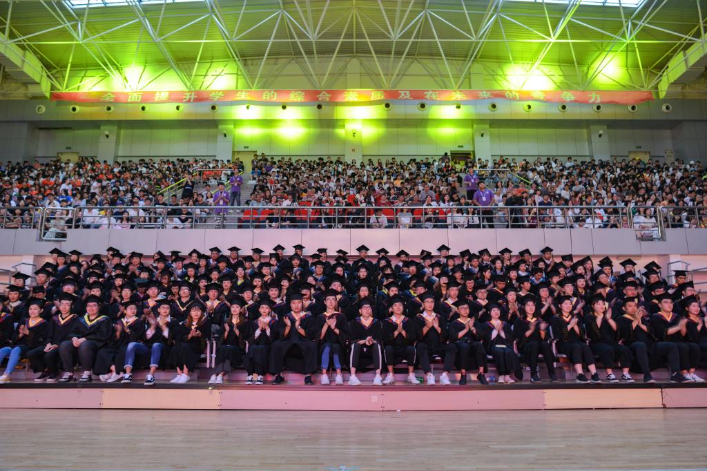 在学院体育馆隆重举行2019届毕业生毕业典礼,为1638名毕业生壮行。学院领导、1600多名2019届毕业生、毕业生家长代表以及在校生代表参加了典礼。典礼由杨斌副院长主持。