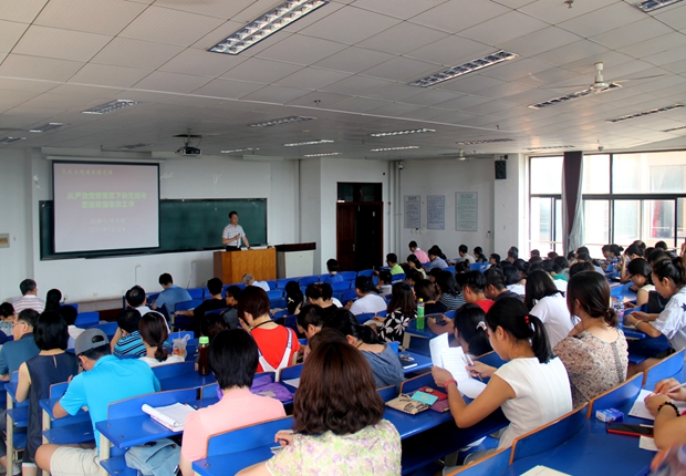 党委“两学一做”学习教育常态化、制度化的总体安排,学院党委于7月12日下午1:30分在教学楼1210教室举办党史与党建专题党课,同时作为基层党支部书记培训班的开班课程。党课由学院党委书记郭玉铸主讲,党群工作部主任赵姝婕主持。