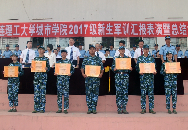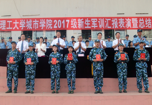 关于2017级新生军训表彰的决定》。与会领导分别为获奖的22个先进集体和105名先进个人颁奖。