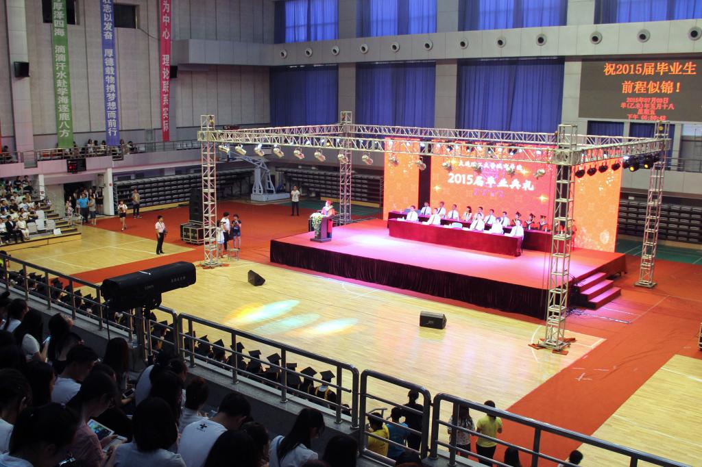 在学院体育馆隆重举行2015届毕业生毕业典礼。学院领导匡国柱、郭玉铸、杨斌、张明君、沈海龙、宋辉等出席毕业典礼,2000多名2015届毕业生和毕业生家长代表参加了典礼。典礼由副院长杨斌主持。