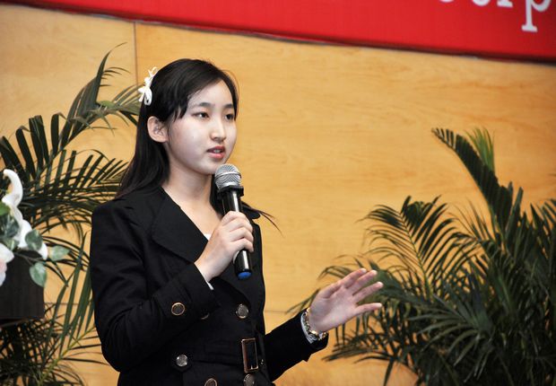 Care Everyone团队成员简雅楠同学向大家介绍了参加微软“创新杯”全球总决赛的获奖项目。她说,是微软“创新杯”比赛激发了他们的灵感,让他们仔细观察身边的事物,挖掘可以解决的世界难题,鼓励青年人去实践,把创新的想法变成现实。她向同学们倡议:让我们一起思考,一起实践,把世界变得更加美好。