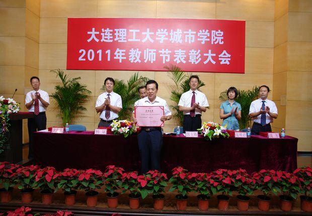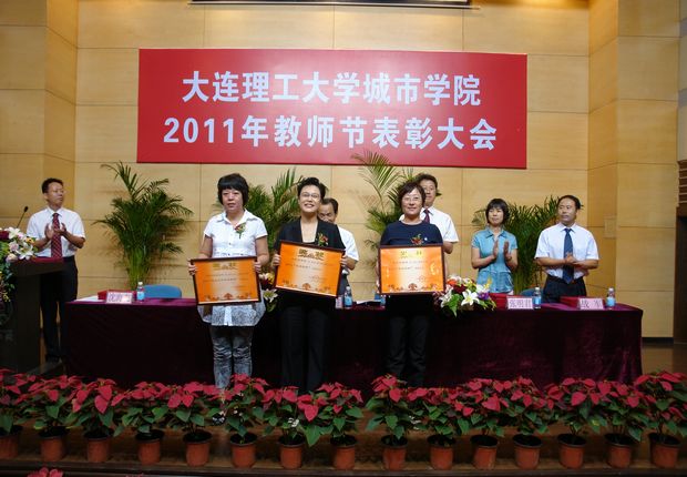 在全场热烈的掌声和悠扬的乐曲声中,获奖先进集体代表和获奖教师依次走上主席台,接受学院的表彰和与会全体师生的祝贺。