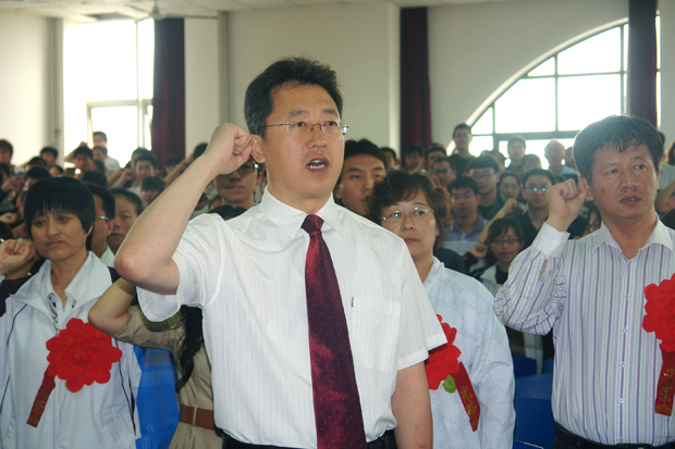 大会在庄严的国歌声中拉开帷幕,随即举行了新党员入党宣誓及老党员重温入党誓词仪式,由学院党委书记郭玉铸同志领誓,114名新党员和与会的老党员面对党旗庄严宣誓,决心为共产主义事业奋斗终身,随时准备为党和人民牺牲一切。