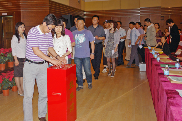 与会党员代表投票选举学院党委委员