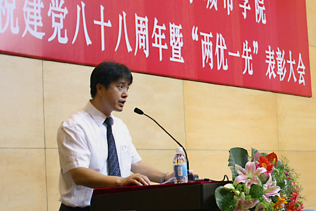 7月1日下午,学院在图书馆报告厅隆重举行庆祝建党88周年暨“两优一先”表彰大会。学院领导匡国柱、郭玉铸、杨斌、王铁成、李宪起、王玉林、王善坤出席了大会。各分院院长、副院长、学生办公室主任,各部门负责人以及全体教工党员、学生党员、部分入党积极分子参加了大会。大会由学院党委副书记兼副院长杨斌主持。