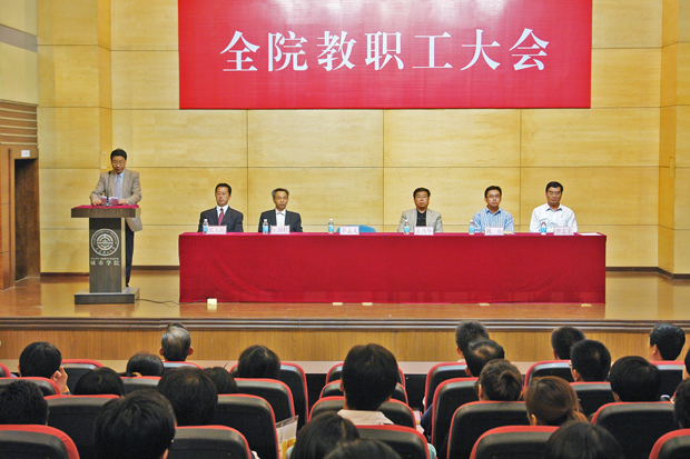 9月28日下午2点,学院在图书馆学术报告厅召开全院教职工大会,宣布69堂