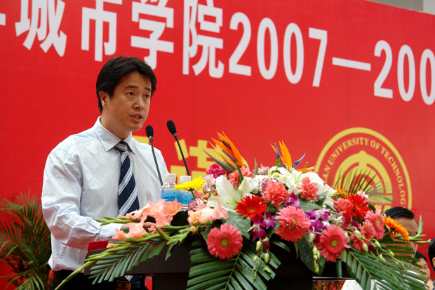 工商管理0804班学生牛彦博代表全体新生发言,他对学哥、学姐们取得的成绩和获得的荣誉表示热烈的祝贺,他表示,全体新生将以获奖同学洒下的汗水作为今后前进的动力,尊师乐学,持之以恒,严于律己,规范言行,诚实守信,履约践诺,做适应社会发展的高素质应用型人才。