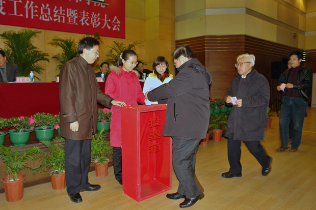 唐院长的工作报告结束后,教职工评议代表和院系及机关、教辅部门负责人以投票的方式,对学院领导进行了民主测评投票。