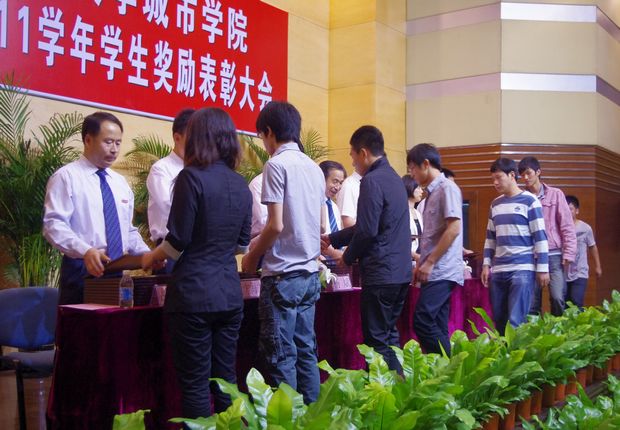 在图书馆报告厅隆重召开2010——2011学年学生奖励表彰大会。学院领导匡国柱、郭玉铸、杨斌、张明君、沈海龙、战军、宋辉和各分院负责人出席了大会。会议由党群工作部主任赵姝婕主持。