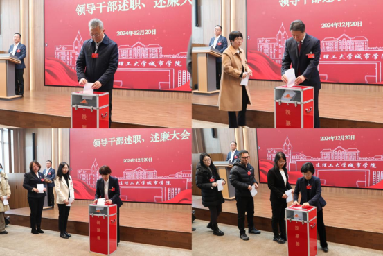 党委组织部部长杨海亮主持领导干部述职、述廉大会,与会人员对学院领导班子进行测评并现场投票。