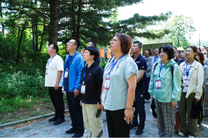 14日下午,在中共丹东市委党校常务副校长陈海峰同志的引领下,学员们走进三大红色教育基地。在邓铁梅、苗可秀纪念碑前,党校教师代青成同志通过现场授课《铁血忠魂映日月初心如炬照征程》,生动讲述了两位烈士以简陋武器英勇抗击日寇的英雄事迹,深刻诠释了“一寸山河一寸血”的忠勇精神。