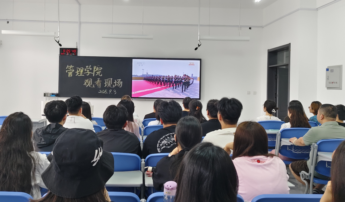 组织师生在图书馆报告厅、教学楼智慧教室、办公楼会议室等场所集中收看纪念大会,深入学习领会习近平总书记重要讲话精神,共同见证这一凝聚民族力量、彰显大国担当的历史时刻。观看现场氛围庄重热烈,师生全神贯注、心潮澎湃。
