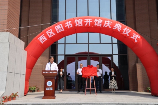 党委书记郭玉铸在开馆仪式上致辞,他指出,西区图书馆的启用是学校发展历程中的一件大事、喜事,图书馆是一所大学的“心脏”,更是贯穿高校教学、科研、文化、社会的综合知识生命体。它把纸电资源、数据库、实验数据、开放获取平台编织成即时响应的知识网,为课堂提供教材教参,为实验室输送前沿文献,为交叉学科提供数据与工具,成为大学创新引擎的燃料舱。图书馆员必须要从后台走向一线,从守门人转为知识教练。他们应能读懂专业论文、操作实验数据、参与课题讨论,用同一套学术语言与师生对话;熟练掌握大数据应用工具,完成数据清洗、可视化和文本挖掘,为研究者设计数据管理计划,推动机构知识库与开放科学实践;理解AI原理与算法伦理,能够调优智能问答系统,用技术提升服务精度,熟悉学术出版生态,指导学者选择可信平台,扩大成果影响力;承担多元服务职责,具备跨学科指导能力;团队需构建多元包容格局,打造专业、复合、温暖、前瞻的队伍。