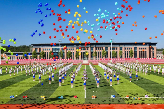学子带来的大型团体操表演—青春•中国,表演整齐划一、动作精准流畅,将现场氛围推向高潮。