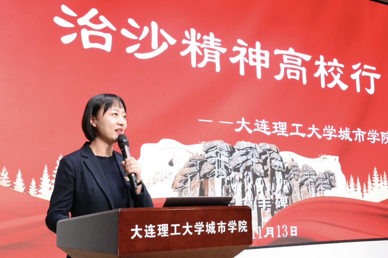 主讲人、来自阜新彰武治沙精神干部学校的刘蕴瑶老师,带领听众穿越时光,回溯了那段从无到有的科学治沙之路。报告中,既有对“沙海播绿人”群像的深情刻画,也有对“因地制宜、久久为功”治沙智慧的系统解读。彰武治沙的艰辛历程与辉煌成就,让在场师生深受震撼。