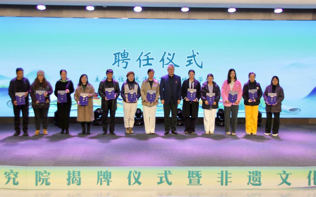 与会学院领导为非遗传承人、工艺美术大师们颁发聘书