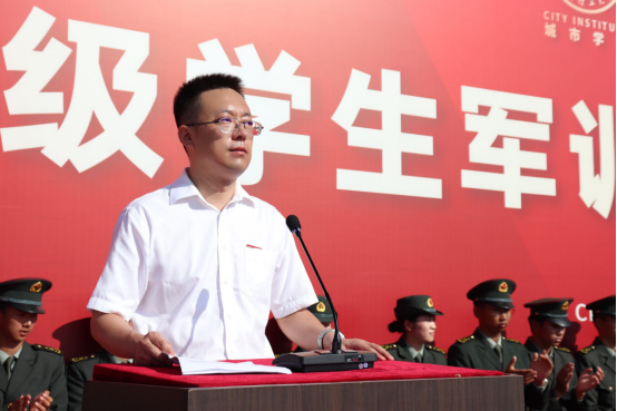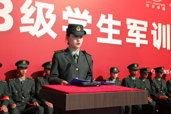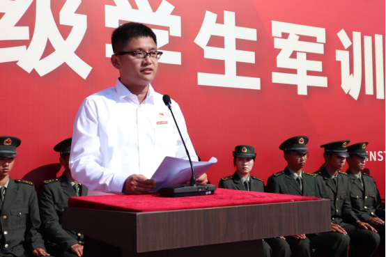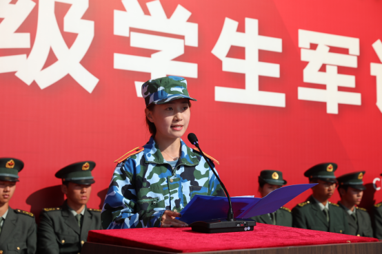 优秀教官代表、外国语学院刘宇欣同学向全体新生提出倡议:在今后的学习和生活中,巩固军训成果,不断的超越自己,认真学习专业知识、掌握本领,努力便自己成厚基础、宽专业、强能力、高素质的复合型人才。