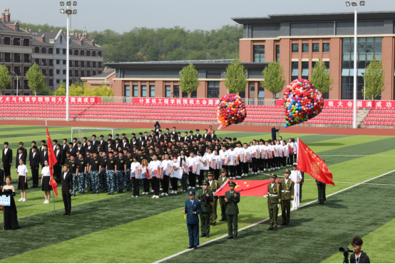 2023年春季田径运动会在学院体育场举行。学院领导郭玉铸、杨斌、宋辉、石华、沈海龙、邹亚新出席开幕式,大会主席团成员在主席台就座,各部门、分院教师、2022级学生在观礼台观看开幕式。开幕式由团委书记赵姝婕主持。