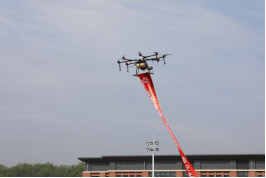 艺术与传媒学院方阵,由“海陆空”三部分组成。“海”——领航号“一船”与“艺传”谐音,寓意艺传人“团结一心、乘风破浪”的奋进精神;“陆”——吉祥物“莓莓”、“洛洛”、“点点”以及绘制在展板上的“艺路拼搏,放飞梦想”标语吸引了观赏者的目光;“空”——无人机悬“挂桃李芬芳,教泽绵长,母校20华诞生日快乐”条幅,表达了艺传学子对母校美好祝福。