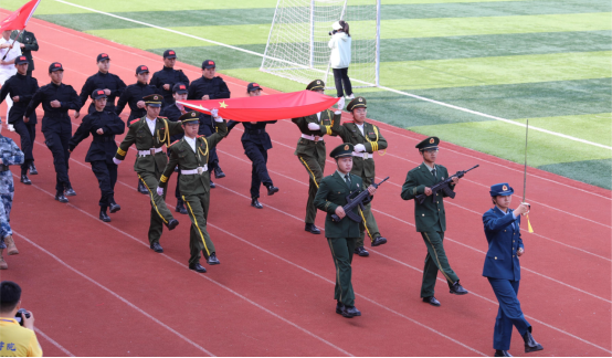 国防教育协会国旗护卫队首先走在入场式最前面,威武庄严。