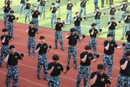 裁判员方阵,48名裁判员精神抖擞,声音洪亮。