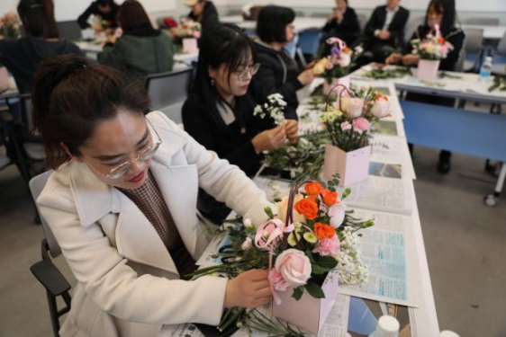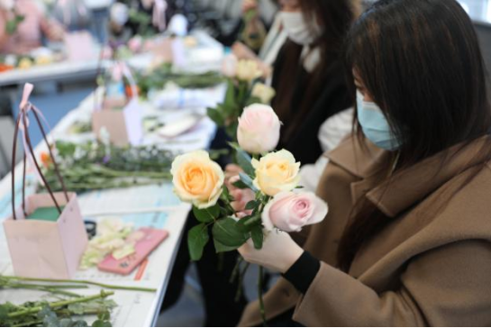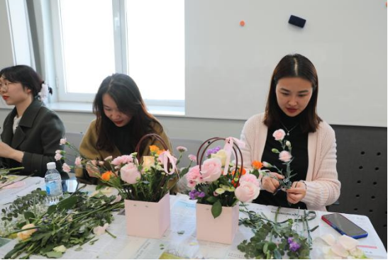 本网讯 花香四溢、笑语连连。4月7日,在管理楼智慧教室,来自全院各部门的33名教师代表,参加了由学院工会举办的“四月芳菲”主题插花活动。