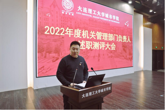 工程实践中心、学生工作部、学院团委等17个部门负责人围绕2022年度主要工作完成情况、存在问题与不足,以及下一步工作计划进行了现场述职。述职坚持问题导向,抓住工作主要问题和关键环节,聚焦解决实际问题,有亮点、有举措、有成效,既总结了实际问题,也理清了工作思路。述职结束后,参会人员秉持客观公正、实事求是的原则,对各机关管理部门、部门负责人、行政教辅全体教职工进行了测评打分。