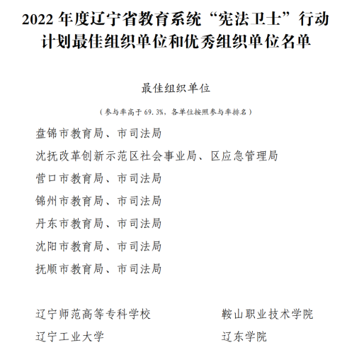 荣获辽宁省教育系统“宪法卫士”行动计划最佳组织单位。