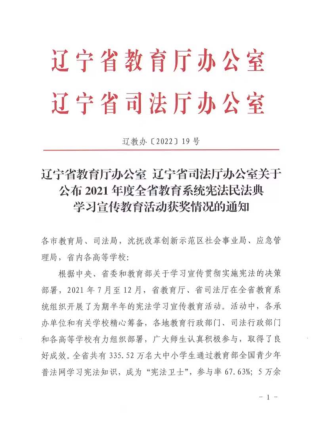 荣获辽宁省教育系统"宪法卫士"行动计划优秀组织单位,69堂