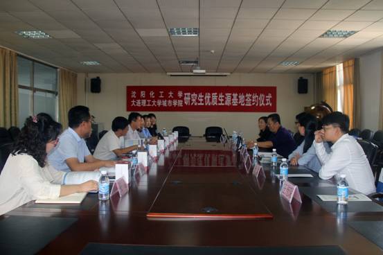 与沈阳化工大学研究生院在八楼会议室举行研究生优质生源基地签约和授牌仪式。副院长杨斌教授与沈阳化工大学研究生院葛铁军院长共同主持仪式。