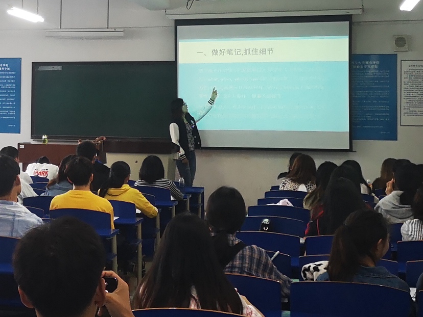 本次系列讲座由外国语学院陈琳、关丽、张雪、姚姝、郝可欣、狄竞怡六位老师担当主讲。在临近四、六级考试只剩短短三周左右的时间里,六场讲座可谓雪中送炭,教室内座无虚席,场场爆满。针对同学们缺乏备考经验的实际,六位老师对考试题型及考试流程进行了讲解,强调了考试中的注意事项,并对诚信考试的重要性进行了强调。