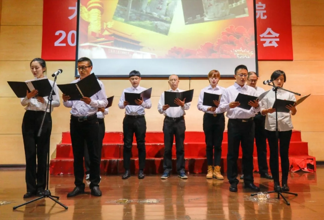 基层团支部比赛结束后,学院机关第一党支部的教师们以其真挚的诗歌朗诵《我的祖国》,向在场的同学们讲述老师心中改革开放四十年的激动和自豪。