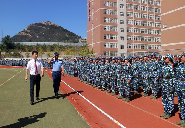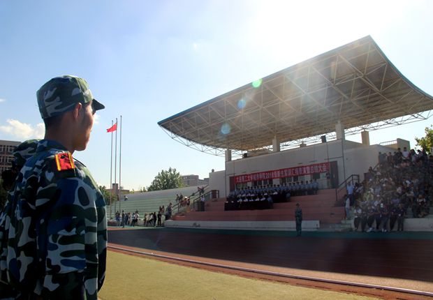 2018级新生军训汇报表演暨总结大会在体育场隆重举行。院长匡国柱、党委书记郭玉铸、副院长杨斌、张明君、沈海龙、宋辉,各分院领导以及93392部队焦振队长和全体新生军训教官出席了大会。
