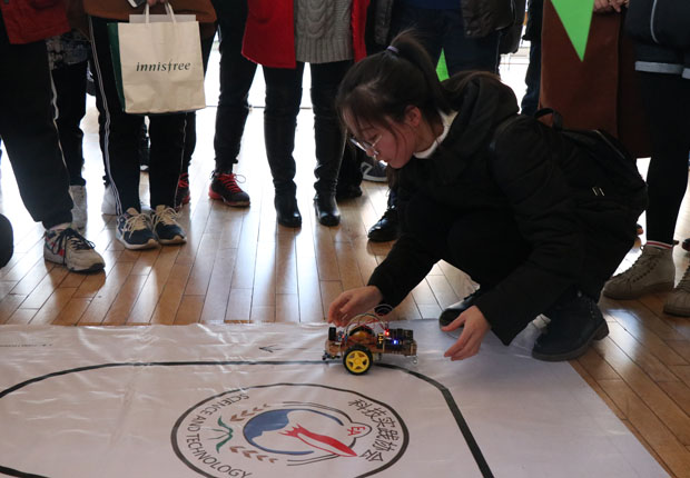 12月11日中午,由电子与自动化学院团委学生会科技实践协会主办的M兴趣小组智能循迹小车竞速赛在体育馆篮球馆火热举行,最终评出一等奖六组,二等奖十组,其他参赛选手分获三等奖。