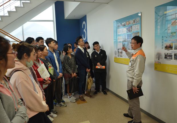 学生。人力资源部今井亨经理首先致辞,对同学们的到来表示热烈的欢迎,公司总经理秘书详细地给同学们介绍了骊住通世泰建材(大连)有限公司的企业概况、生产设备、主要产品、质量管理、环境保护以及社会贡献等情况。随后,学生们近距离地参观了工厂,感受了著名日企的69堂、经营理念及工作流程等。